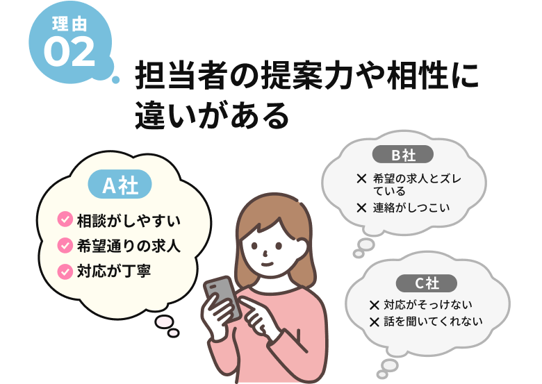 - 保健所や企業の求人数が多くてびっくりしました。以前は小さなサービス会社を利用していましたが、やっぱり大手を使った方がいいなと改めて思いました。
